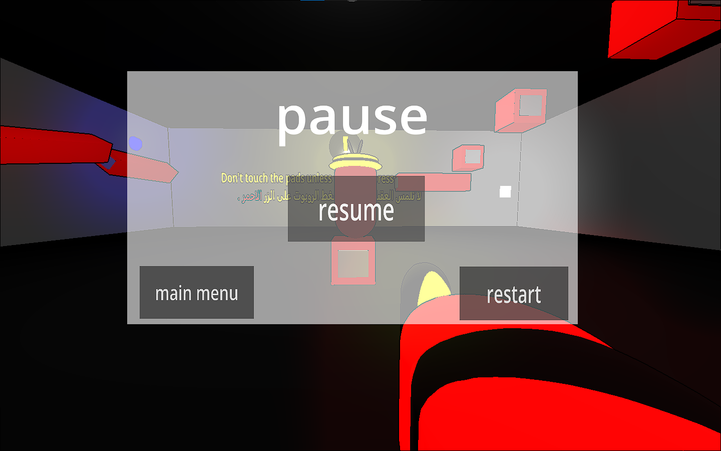To solve pause menu problem ,press "ESC" and click on resume..resume ثم اضغط على "ESC"لإصلاح مشكلة صفحة الوقف اضغط على